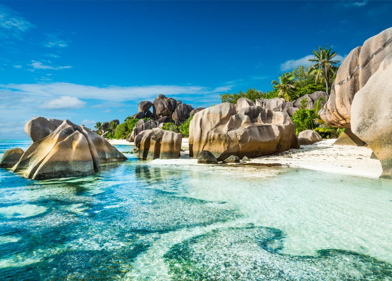 Famous for its powdery white sand and striking granite boulders, Seychelles is home to some of the most beautiful beaches on earth. Islands like Mahé and La Digue offer turquoise waters, lush tropical forests, and peaceful shores perfect for a serene island escape.